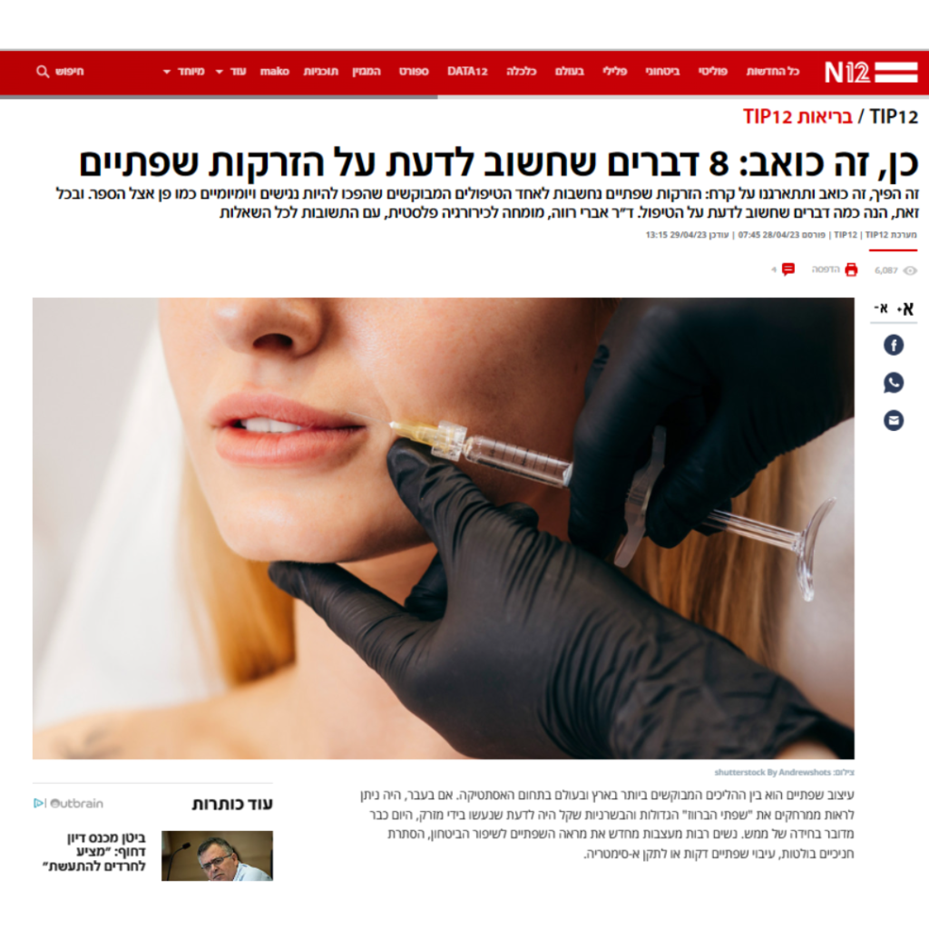 זה הפיך, זה כואב ותתארגנו על קרח: הזרקות שפתיים נחשבות לאחד הטיפולים המבוקשים שהפכו להיות נגישים ויומיומיים כמו פן אצל הספר. ובכל זאת, הנה כמה דברים שחשוב לדעת על הטיפול. ד"ר אברי רווה, מומחה לכירורגיה פלסטית, עם התשובות לכל השאלות
